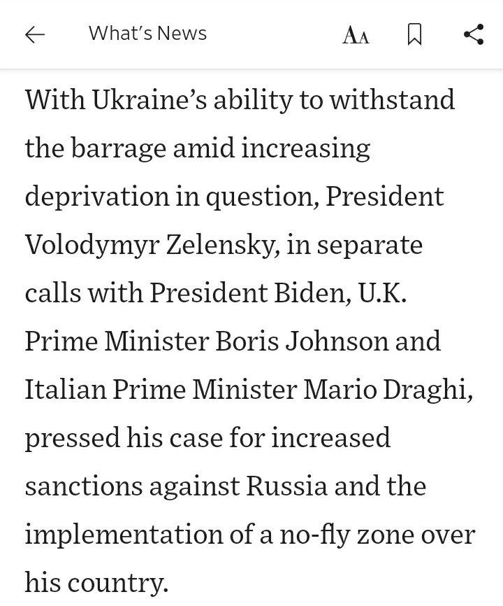 Ukraine rejects Russia's offer to evacuate civilians to the east as Zelensky continues to demand a no-fly zone
