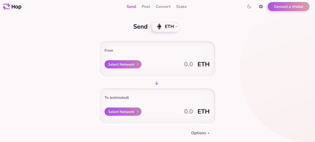 Prześlij środki pomiędzy łańcuchami za pomocą app.hop.exchange i zapewnij płynność na jednym z obsługiwanych protokołów: Optimism, Arbitrum, Polygon lub Gnosis Chain