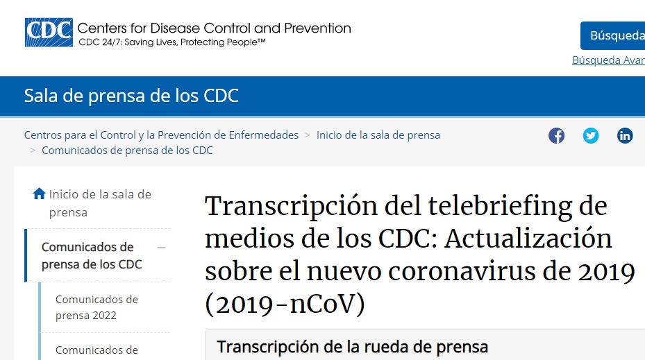 de los CDC del 31 de enero la Dra. Nancy Messonnier, directora del Centro Nacional de Inmunización y Enfermedades Respiratorias, declaró: Si bien es temporada de resfriados y gripe, cdc.gov/media/releases…