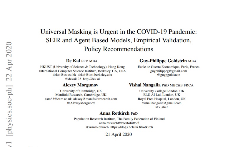 de políticas de máscaras obligatorias? Sí, hubo estudios que surgieron después de que se hiciera esta declaración que concluyeron que las máscaras sí ofrecían cierta protección, pero hubo muchos arxiv.org/pdf/2004.13553…