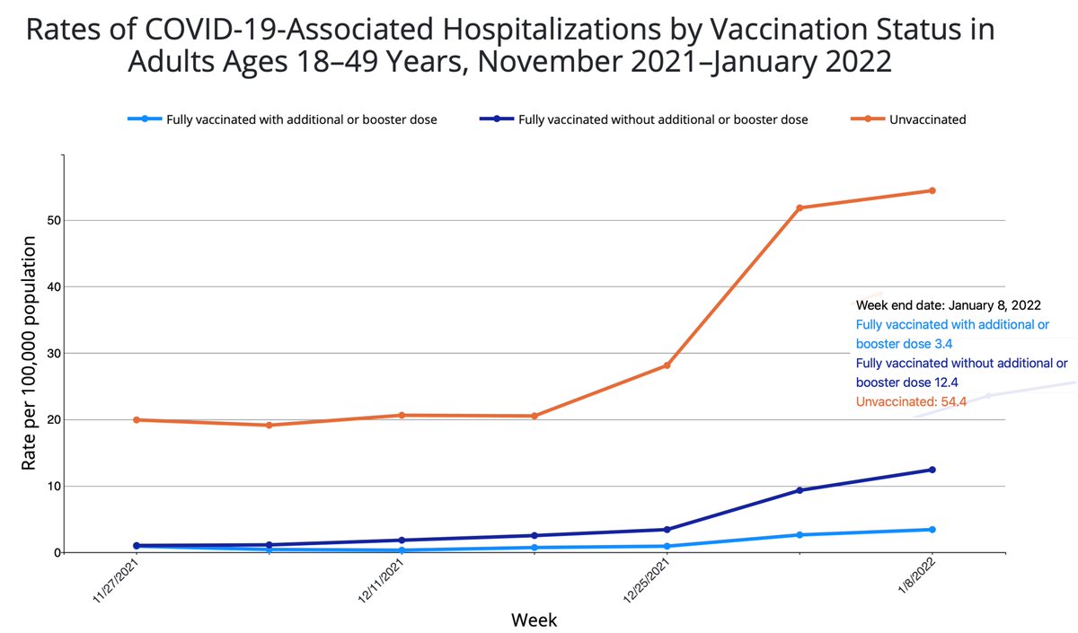 Proof of benefit of vaccine booster for protection from Covid hospitalization in young, age 18-49, as previously documented in other countries covid.cdc.gov/covid-data-tra…