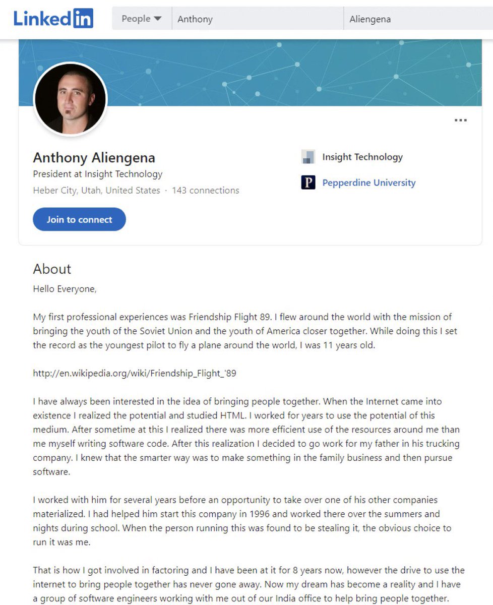 Кому интересно, сейчас Тони, простите… Энтони выглядит вот так, у него свой стартап в области грузоперевозок.