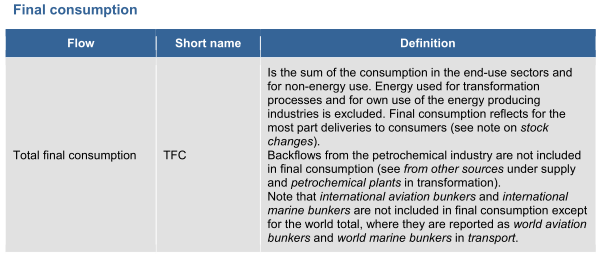 Le secteur «Non-energy use» inclut les hydrocarbures qui sont utilisé en tant que matériaux de base : fabrication de plastiques, de vêtements, white spirit, lubrifiants (pour moteurs, je précise),...
