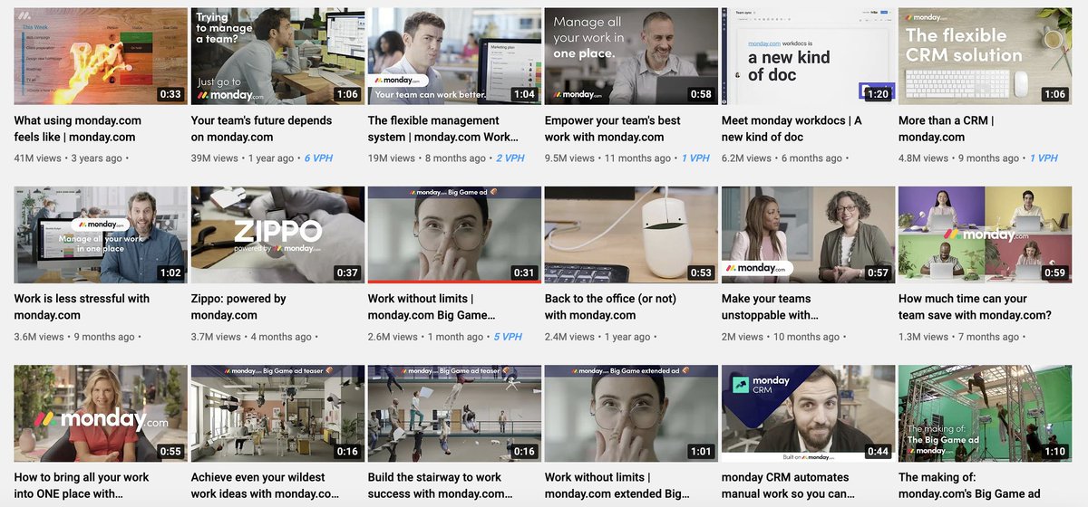 Monday leans heavily into YouTube videos and is seeing some great ROI on the back of it. This quick tutorial on project management in Monday has over 120k views.