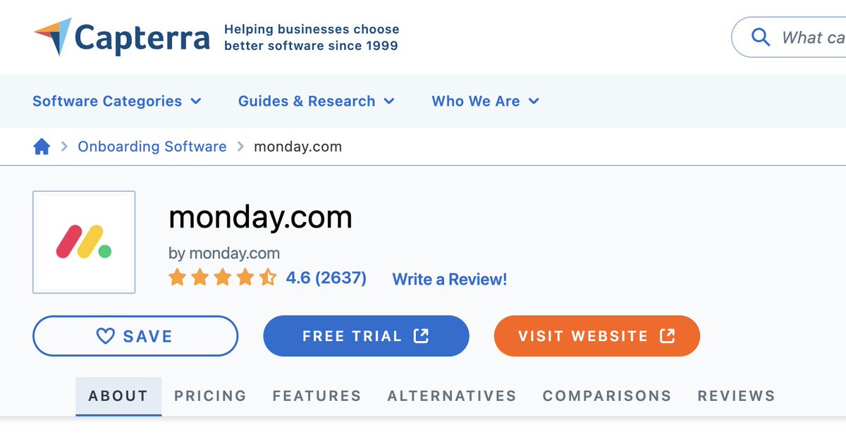 It's estimated that nearly 10% of all referral traffic to Monday comes from Capterra.