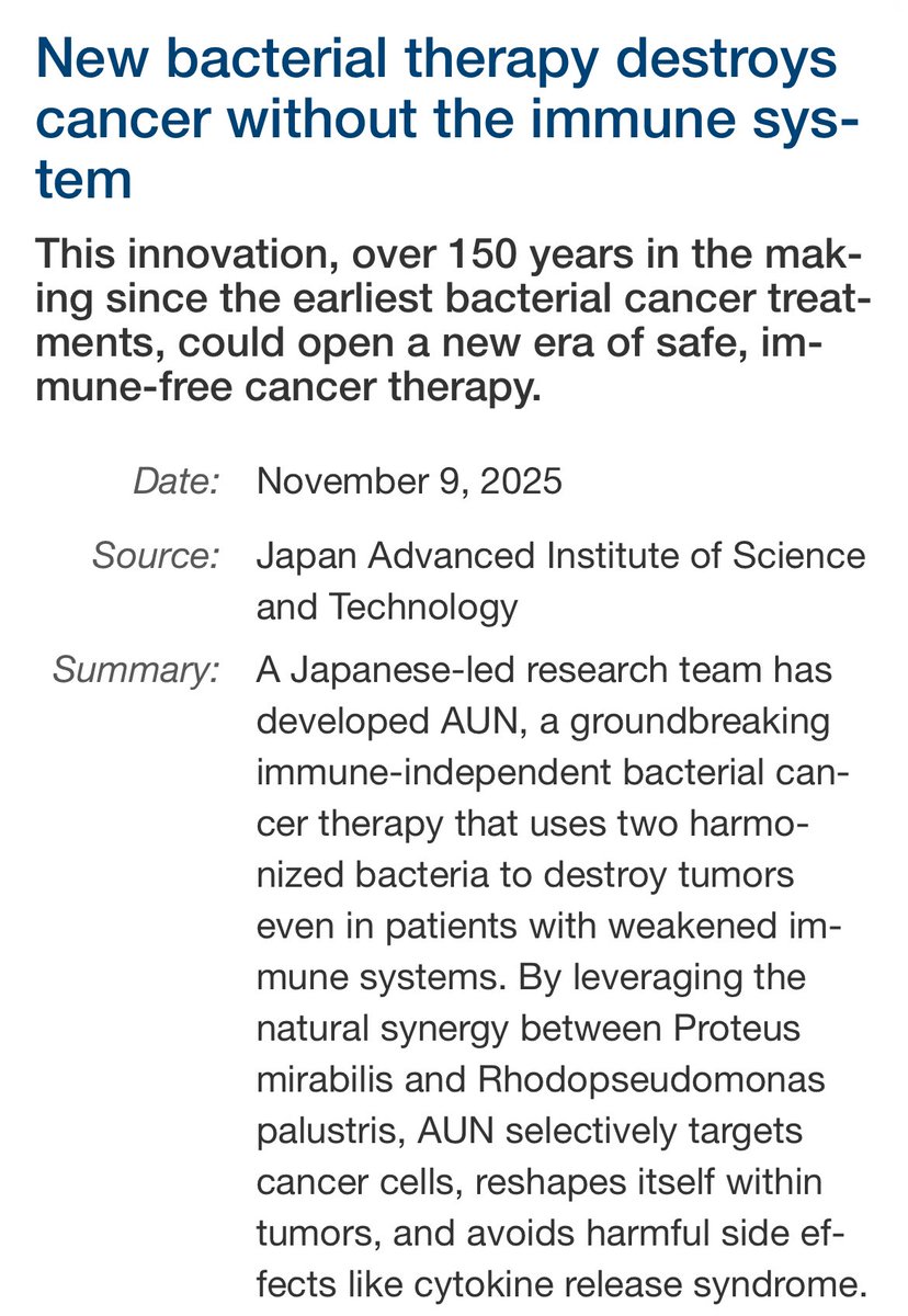 Investigadores japoneses han creado AUN, una terapia bacteriana que ataca el cáncer sin necesidad de que el sistema inmunitario esté activo.