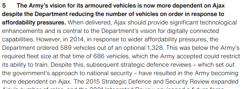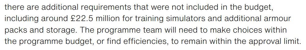 (29/n) Pushing requirements into the broad 'later' bucket and sharing costs with the now cancelled WCSP is going to hurt later. Add in that MoD hasn't paid >£1bn to GD but will have to remediate that money if they get back on track and there may be a funding time bomb on Ajax now