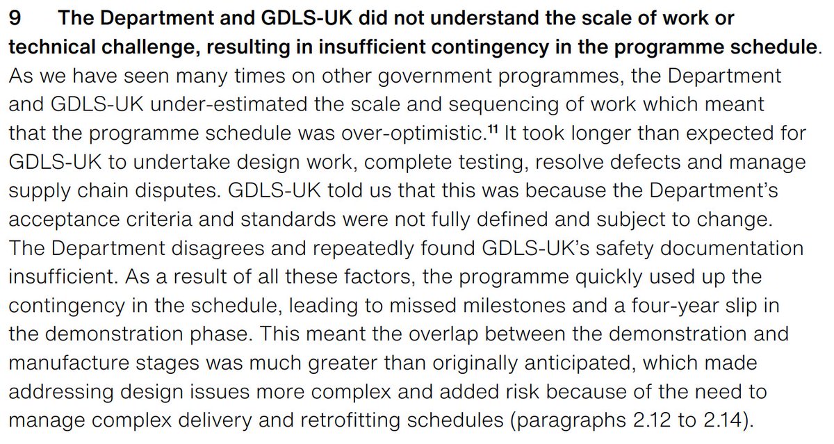 (3/n) These are the scary ones. Late 2022 before a solution might be found. No idea of IOC. 'More than' £10bn through life cost vs £6bn originally. This isn't something that's going to suddenly get back on track