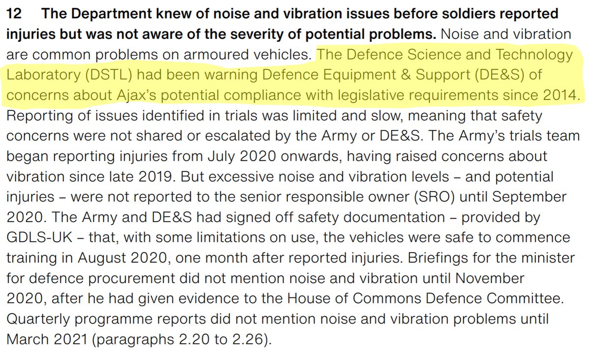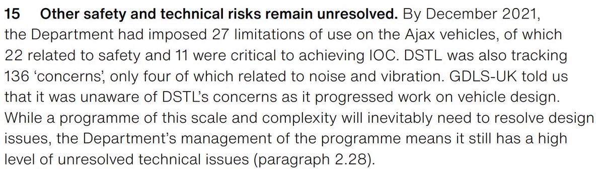 (17/n) A valuable nod to the little recognised fact that Ajax has a ton of dependencies, many of which are going through their own problems. Solving Ajax doesn't actually deliver the capability, MoD needs to solve a range of problems across the portfolio.