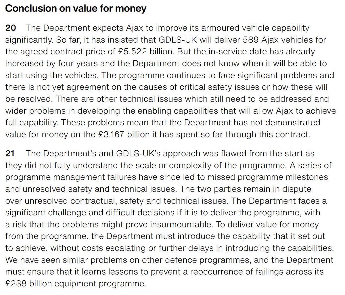 (2/n) Nice top line facts. Many will point to £3bn spent, 26 vehicles received but its obviously a little more nuanced than that, not least because of decision to run demonstration & manufacture together. Also there would have been a lot more than 26 if the issues hadn't arisen