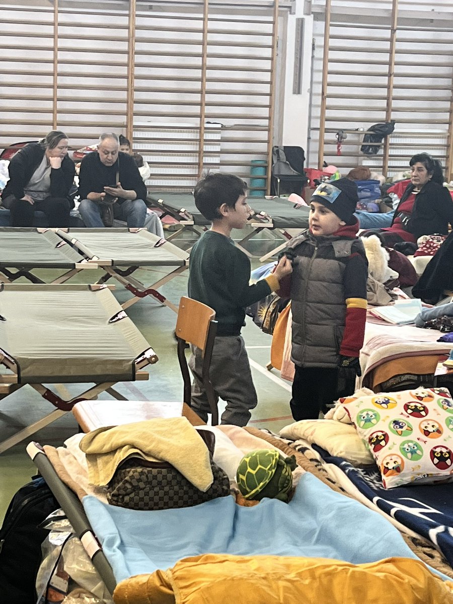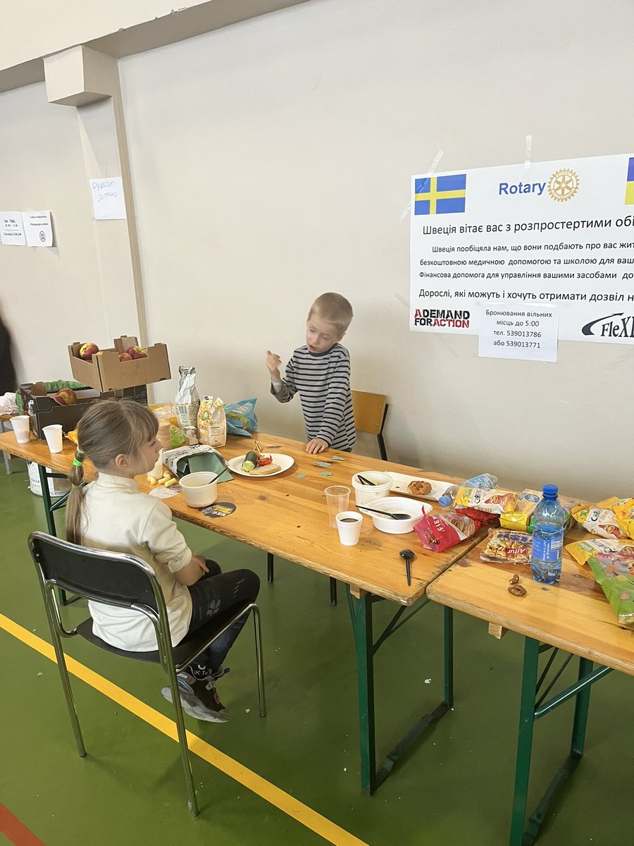 This sign behind the kids at the refuge centre is from various Swedish 🇸🇪 charities. It says: “Sweden greets you with open arms. Sweden has promised to take care of you with housing, free medical care and school for your children. Financial aid to help with your livelihood.”
