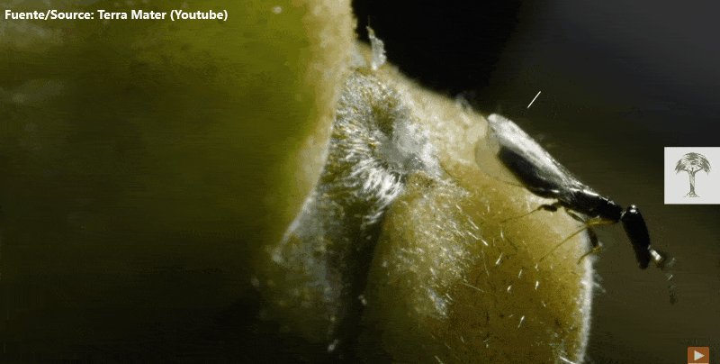 ... por lo que en su proceso de salida, las avispas ♀️ se cubren de polen que llevarán consigo a otro "fruto", completando así el ciclo reproductivo de la planta.