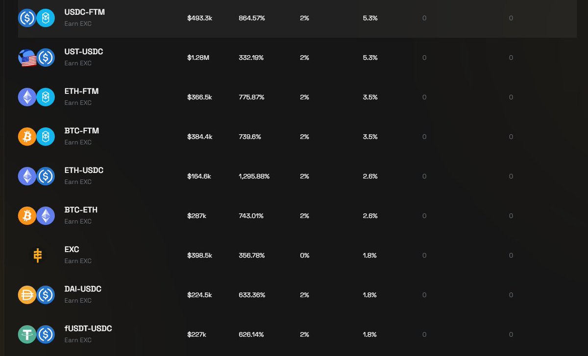 $EXC is the main token and can be purchased directly on their site. It can be earned by staking non $EXC pairs as well as selective incentive single stake pools. I assume they’ll target Popular tokens like $BOO, $SPIRIT, $LQDR and $BEETS.