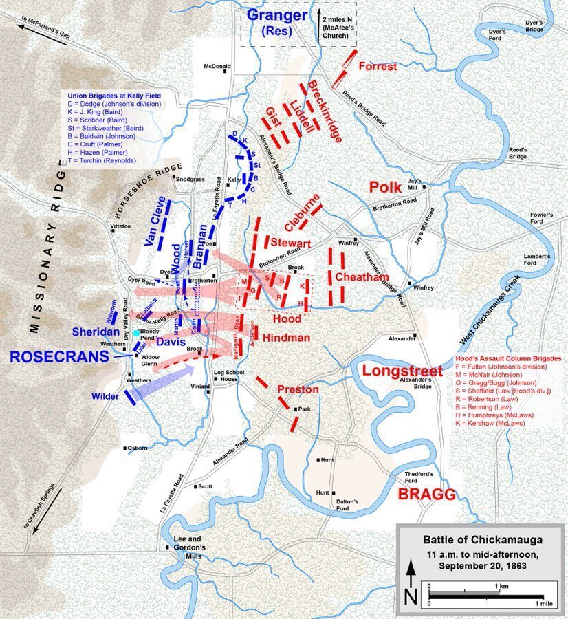 Unfortunately, he was most known for being in command during the disastrous rout of the Army of the Cumberland during the Battle of @ChickamaugaNPS. His confusing order had created a gap in his lines, through which a confederate corps attacked.