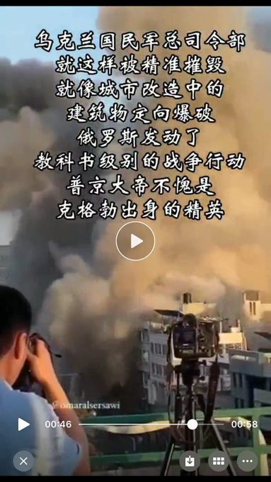 They share a video with the caption: Russian precision attack sinking the Ukrainian Defence Headquarter, Putin the Great is a KGB legend. I point out that people were speaking Arabic in the video and it was actually the Israeli operation in Gaza. They ignore my fact checking