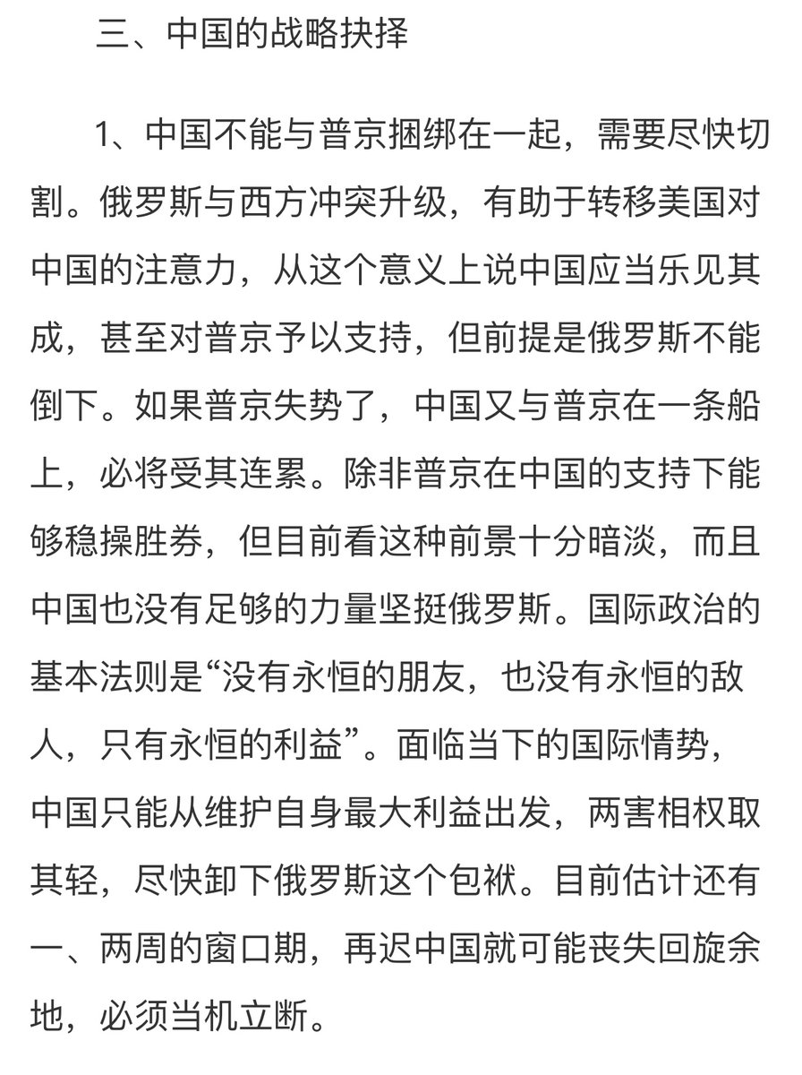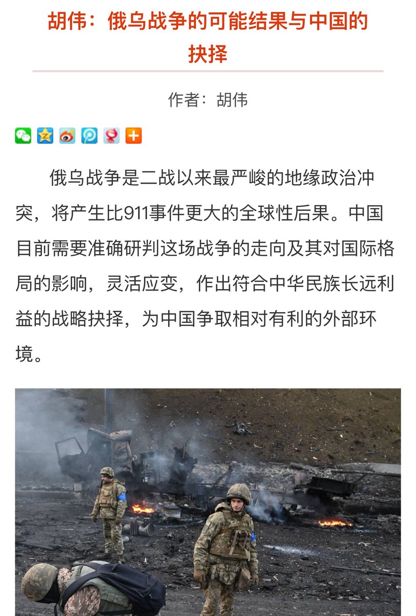 A fascinating analysis by Hu Wei, a deputy director of the Public Policy Institute of the Chinese Government: Possible outcomes of #UkraineWar and China’s strategic choice. /thread
