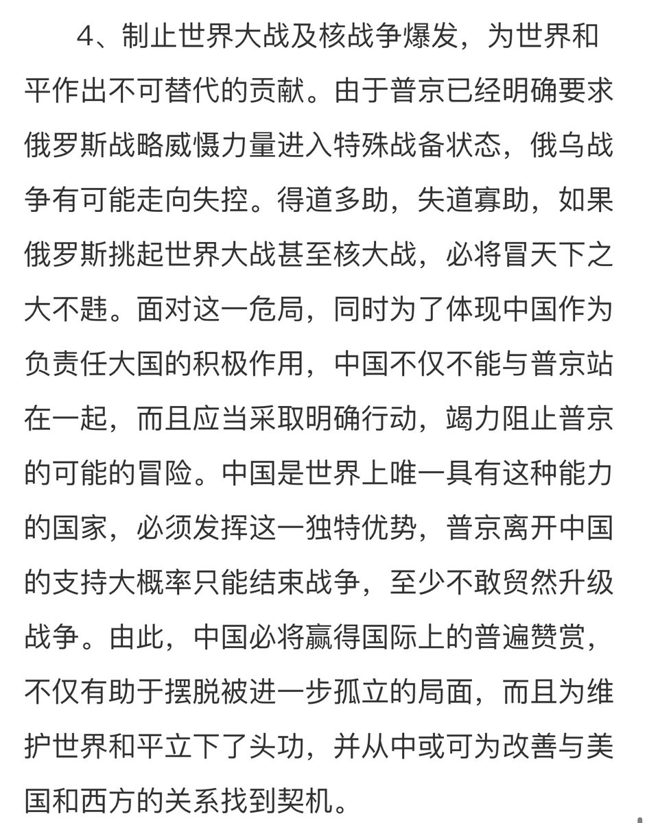 As a world power, China should do help stop a coming nuclear world war and maintain peace. Russia will be an international pariah for bringing nuclear disaster to the world and China should do everything it can do to deter Putin from going over the precipice /end thread
