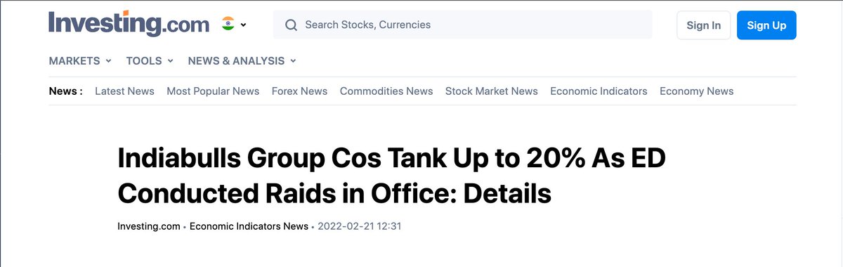 Eg 2) On 22 Feb 2022, shares of Dhani Services hit the lower circuit of 20% after the news broke out that ED had conducted raids at the office of its promoters at Indiabulls Finance Center in Mumbai.