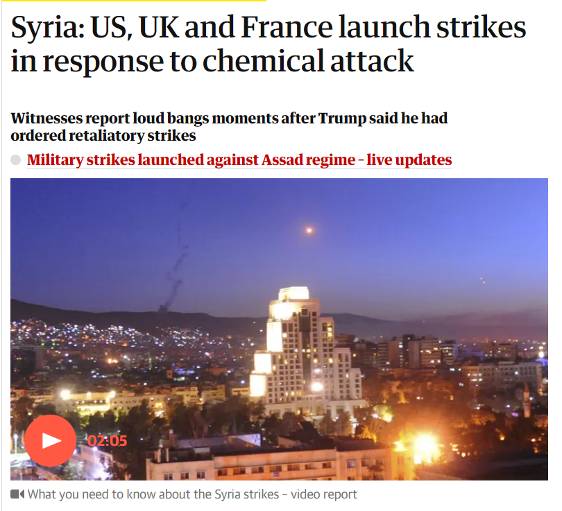 On April 14, 2018 US, UK & France launched +100 missiles against Syria in response to the alleged chemical attack in Douma.