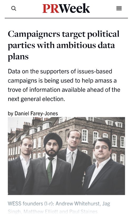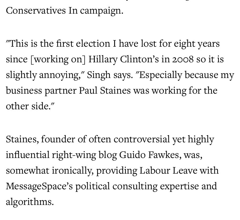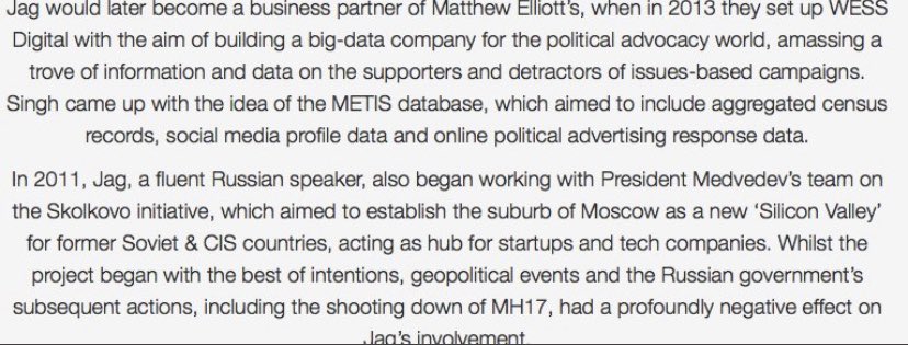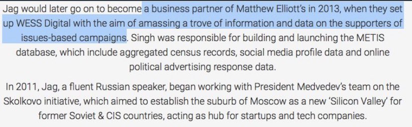 And here’s a funny thing, shortly afterwards Singh & Guido join with a 3rd ‘friend of Russia’ the CEO of Vote Leave, Matthew Elliott, to set up a new data firm, WESS Digital ‘to help amass a trove of information ahead of the next general election’