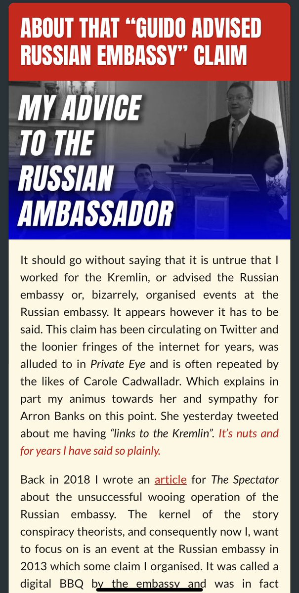 In his statement yesterday, Guido said it was ‘untrue’ he had any relationship with the Russian Embassy 🤷♀️ He says it’s what explains his ‘animus’ toward me & his ‘sympathy’ for Arron Banks.