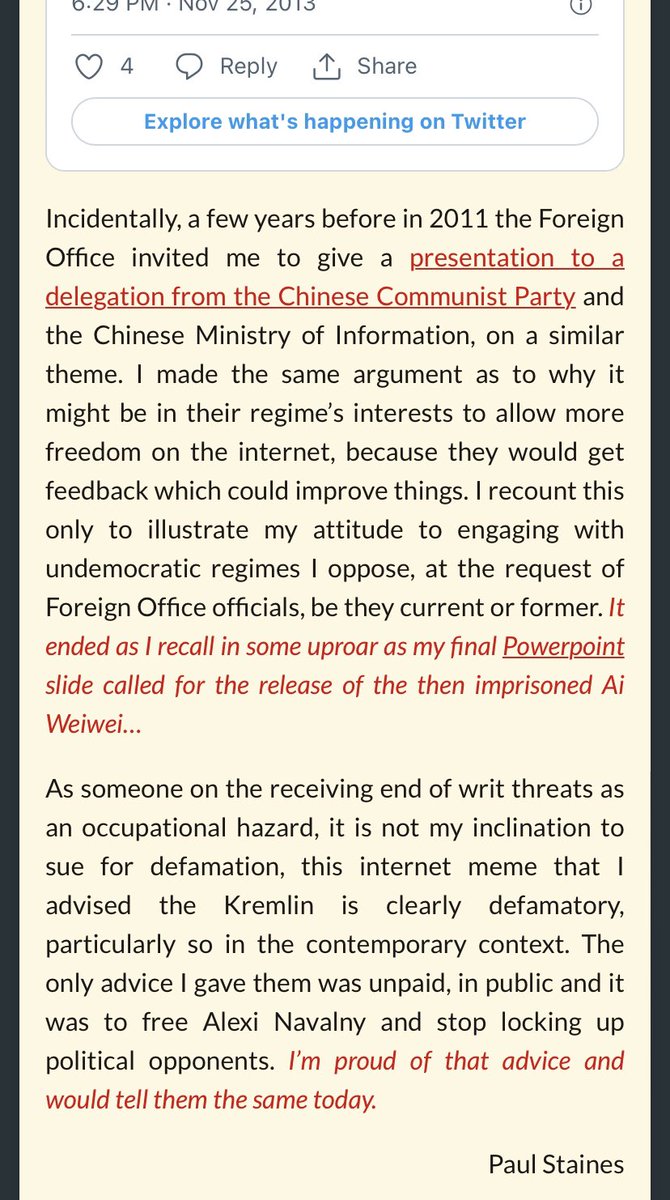 Inevitably he makes it all about me. And imputes various bits of nonsense. Below is what I actually said. His friendship with Sergei Nalobin, the Russian spy who ran an influence operation that targeted Conservative MPs & allies, that he wrote about y’day is one of those links