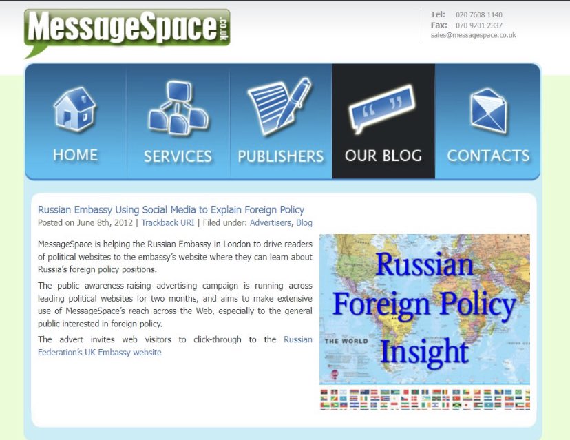 But his denials & threats are a little weird given it’s a matter of record that his company MessageSpace worked with the Russian Embassy. Guido - aka Paul Staines - had a contract with the Russia Ministry of Foreign Affairs to help ‘explain Russia’s foreign policy positions.’