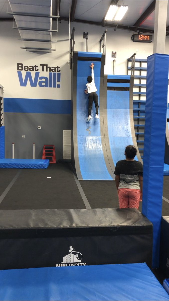 two years ago we were at a parkour gym — they had a 15 foot wall that people would try and run up — it was real hard — the guy said most adults can’t do it — me and one of the twins started talking about it — he said he could do it — I said no way — we bet on it…