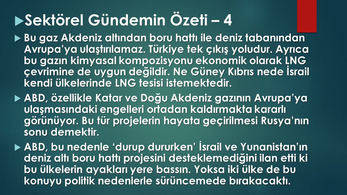 Asıl hedef Basra gazının ve petrolünün Avrupa’ya taşınması. Ek olarak Doğu Akdeniz tabii ki.