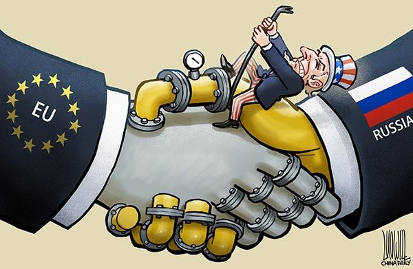 Rusya'yı, Avrupa'nın üstüne saldı. Ardından Avrupa'yı dize getirdi. Rusya’ya karşı onları birleştirdi. Para onlarda. Petrol ve gaz satarak bu parayı onlardan Rusya sömürüyordu. Günde 820milyon dolar! İyi para! Şimdi sıra ABD'de. Avrupa'nın burada zerre sözü yok.