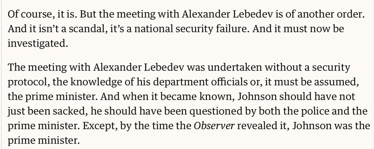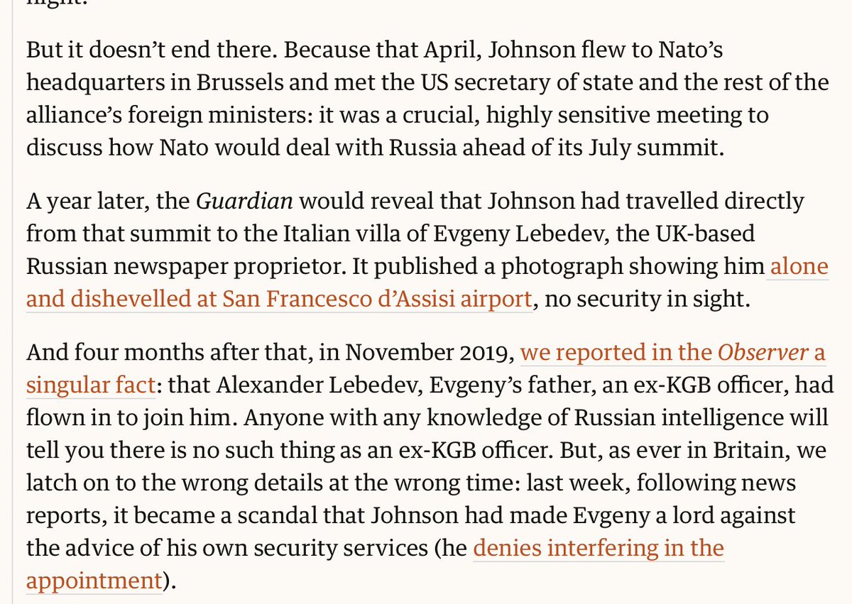 1 year later, @guardian revealed Johnson left crucial NATO meeting & flew to Lebedev's villa.
