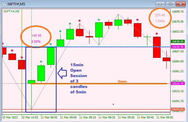 On the left 145.15 pts and 0.88% which is Volatility in the first 15mins.