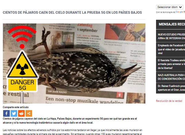 teléfonos celulares/móviles que se están construyendo en o cerca de las estaciones de bomberos. Los bomberos no son los únicos que sufren los efectos; se informó que cientos de pájaros cayeron del cielo en los Países Bajos durante una prueba de 5G.