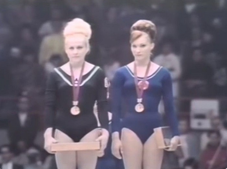 Non ce l’ho con lei, la sovietica Larisa Petrik che è con me sul gradino più alto del podio.