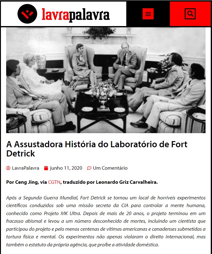 "A Assustadora História do Laboratório de Fort Detrick", artigo de Ceng Jing, traduzido por Leonardo Griz Carvalheira e publicado pelo LavraPalavra: