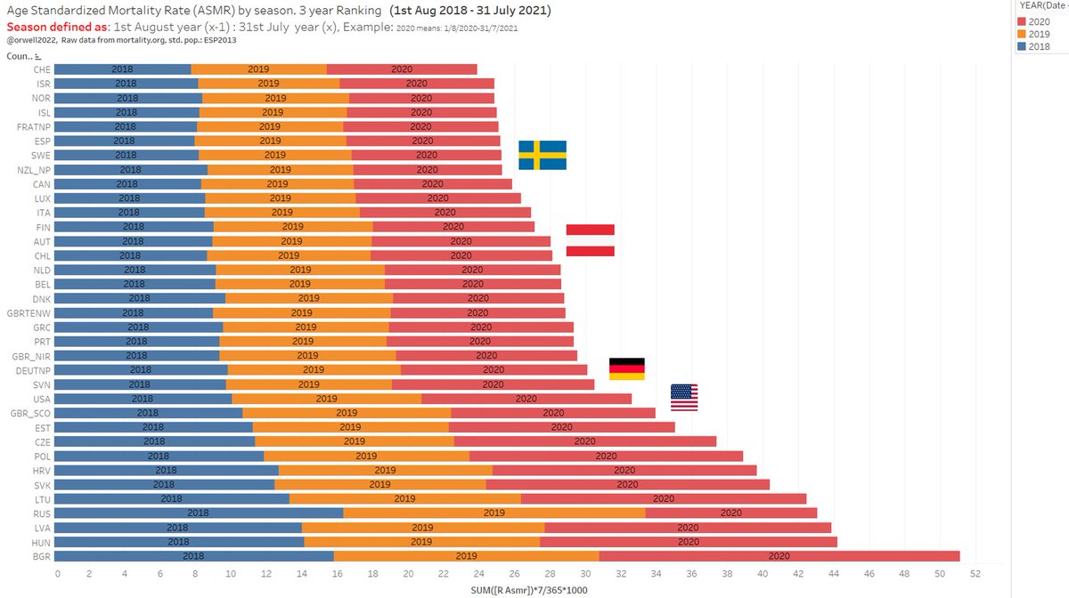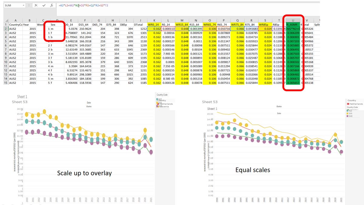 2/ Using mortality.org as source is less accurate as only one large 15-64 bin is available for this band. That creates a bias which underestimates the ASMR. For emerging countries (life expectancy <65), such a large bin is far too wide.