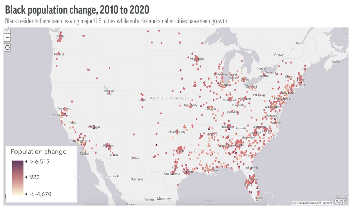 For decades, Black residents have been leaving some of the largest cities in the U.S. while suburbs saw Black population growth. From 1990 to 2000, 13 of the biggest cities lost Black residents. By 2020, it was 23. apnews.com/article/census…