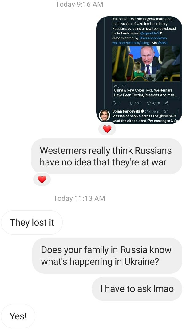 A lot of this "we have to reach the Russians" stuff seems primarily aimed at satisfying the need of Western libs to "do something." You wear the mask. You support BLM. You send the text.