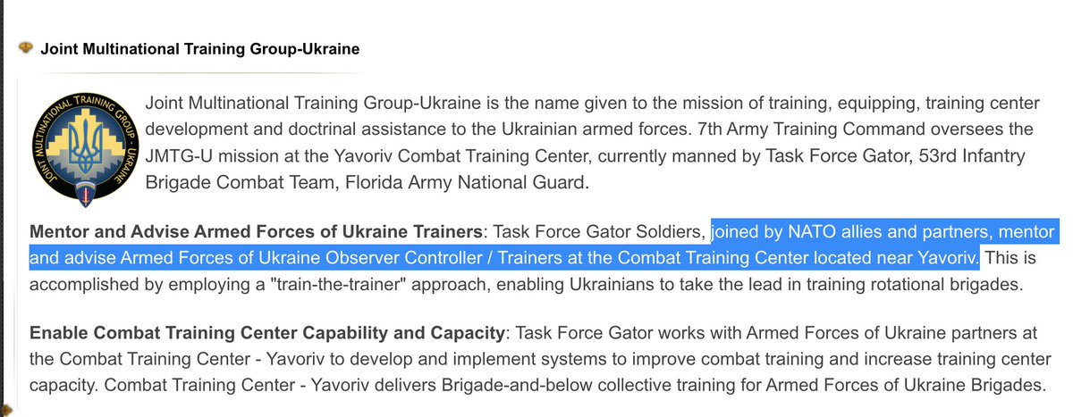 If Russia struck Yavoriv, then Putin really wants to start WW3. Because it's not only right on the Polish border. It's where "NATO allies and partners, mentor and advise Armed Forces of Ukraine Observer Controller / Trainers at the Combat Training Center located near Yavoriv."