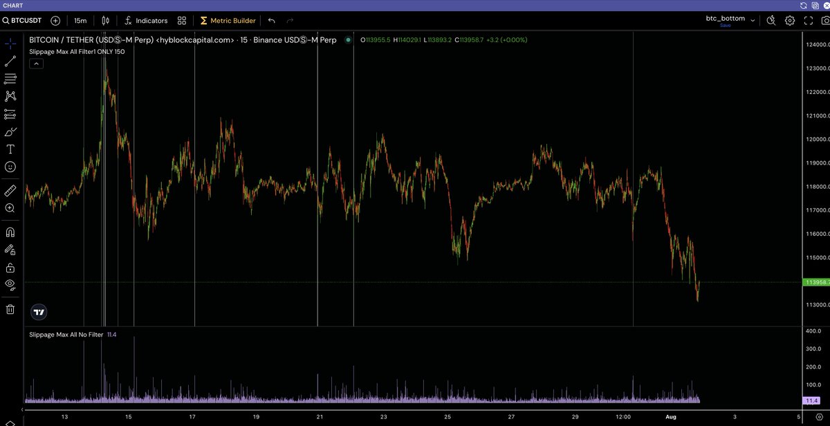 Max slippage often catches local tops and bottoms as it is a decent proxy of when stop hunts and/or "fomo" occurs.