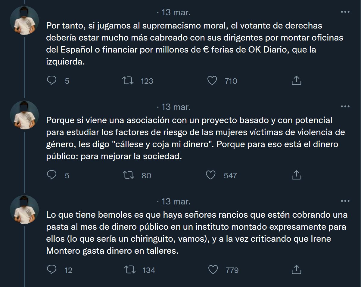 Aparte de dar una información muy precisa, también se queja de como la gente de derechas habla de chiringuitos sin informarse, y que donde realmente se dan es en sus partidos.