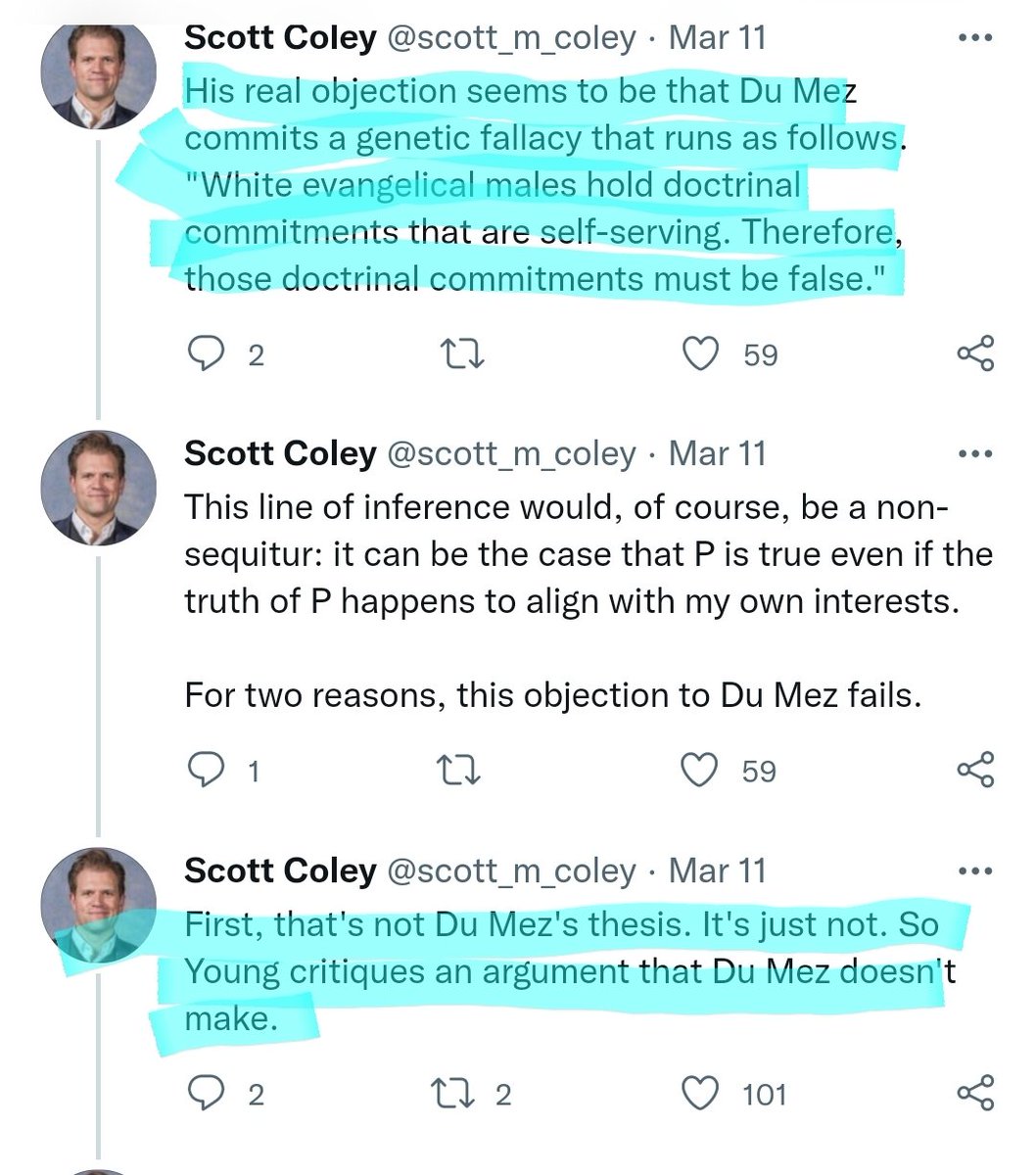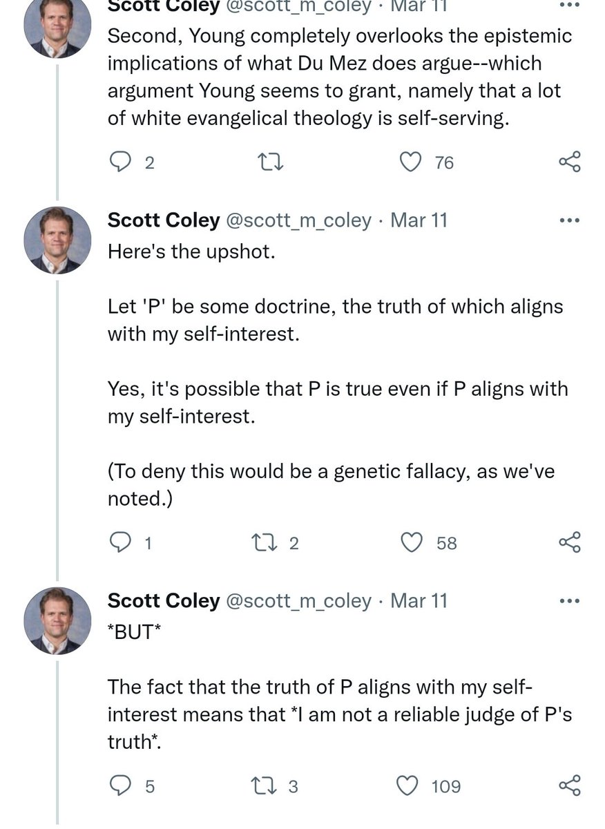 6/ Scott says I missed the epistemological point Du Mez makes about self interest: