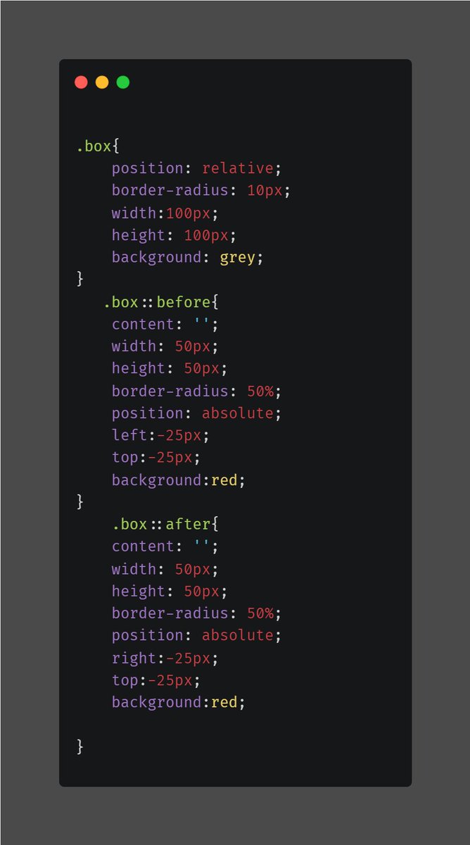 ☝️ In the above example the ::before element get placed so it will be moved left and top-25 and appear on the box.