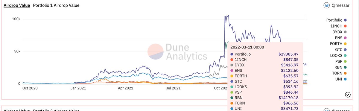 We add all big airdrops in the past and compare our portfolio today if we had sold after: