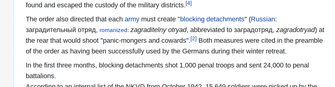 7/ large scale use of "blocking detachments" - military formations created to shoot at own troops if they started retreating.