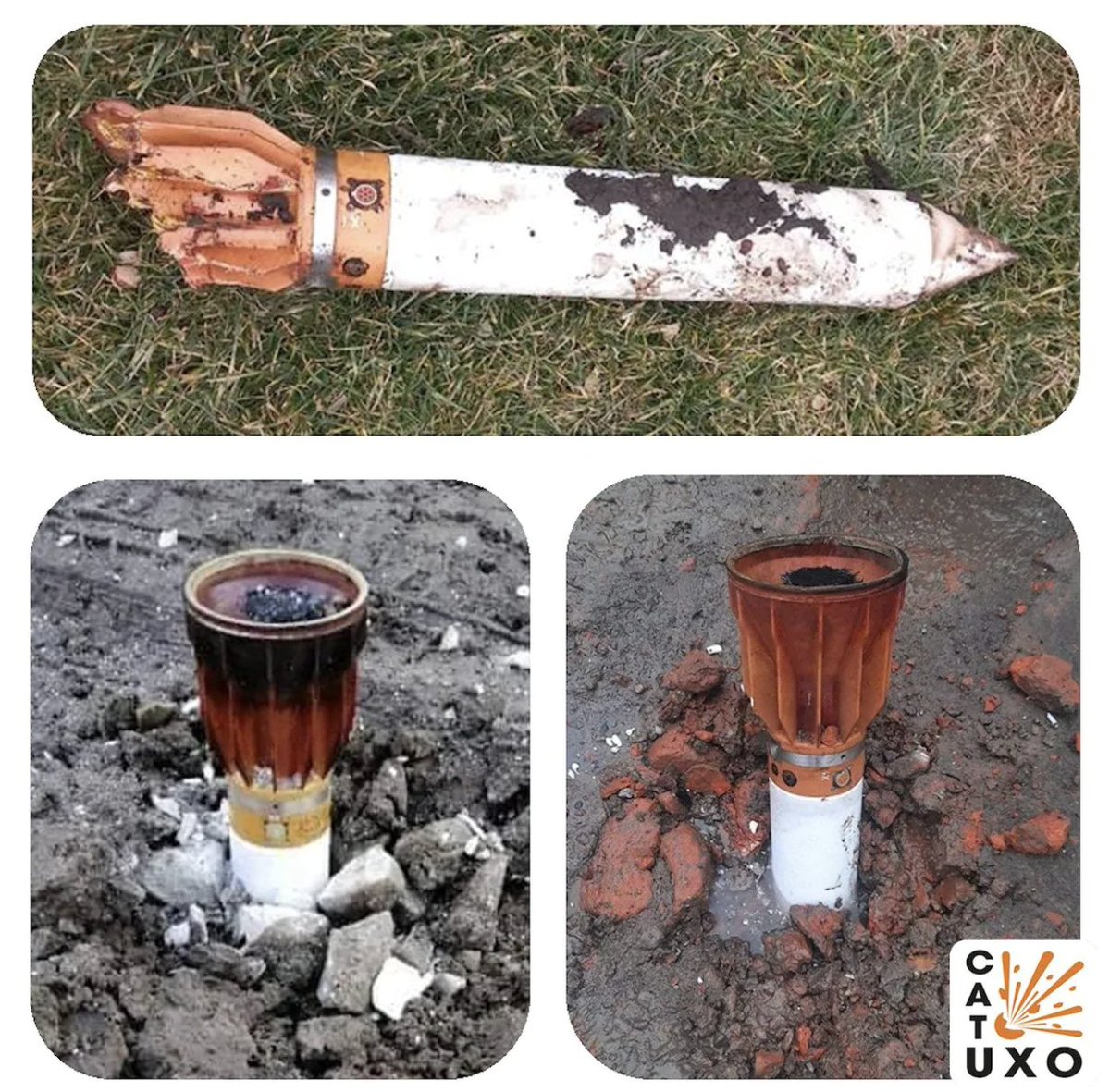 The devices are each about a foot long and coloured white with an orange tail and are powered by solid-fuel rocket motors.