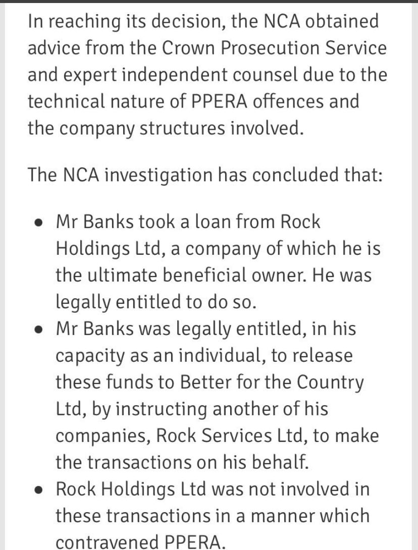 This was rest of NCA statement. It’s technical & nerdy but @ElectoralCommUK explained they investigated for a year & traced money to Isle of Man entity. IOM is offshore & dark & therefore they ruled donation was unlawful. NCA traced £ to same entity, but decided it *was* lawful.