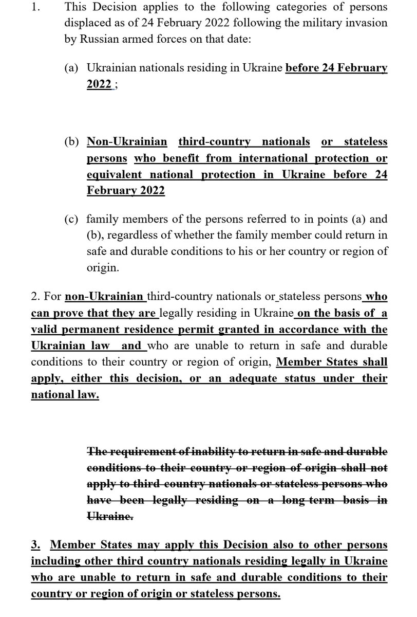It's not officially published yet, but here's the scope of who's covered by the temporary protection decision as agreed by the Council - reduced as compared to the Commission proposal.