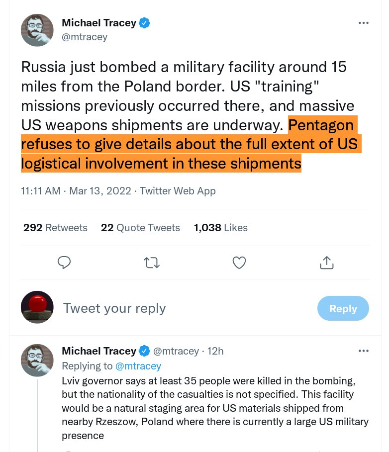 gee i wonder why. almost as if Russia repeatedly warned about targeting shipments of military aid to Ukraine.