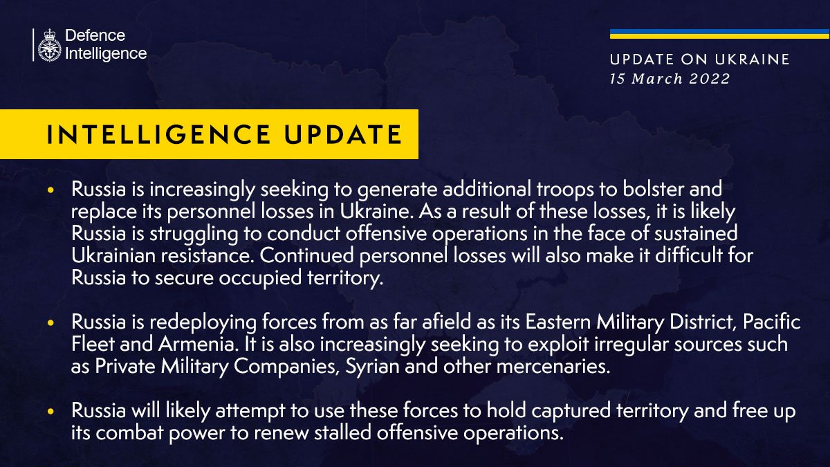 Short summary of the military situation in Ukraine (March 15) 👇🧵
